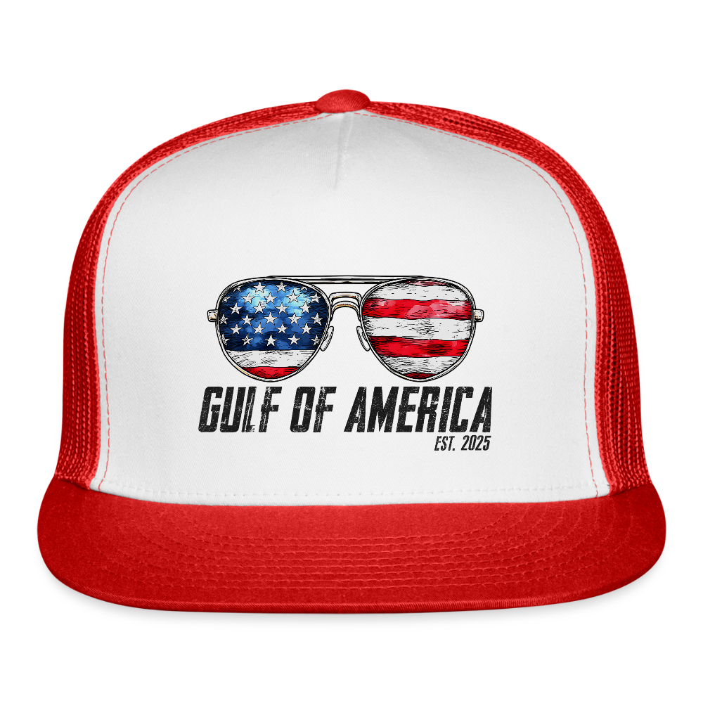 Gulf of America Sunglasses Patriotic Trucker Hat - white/red