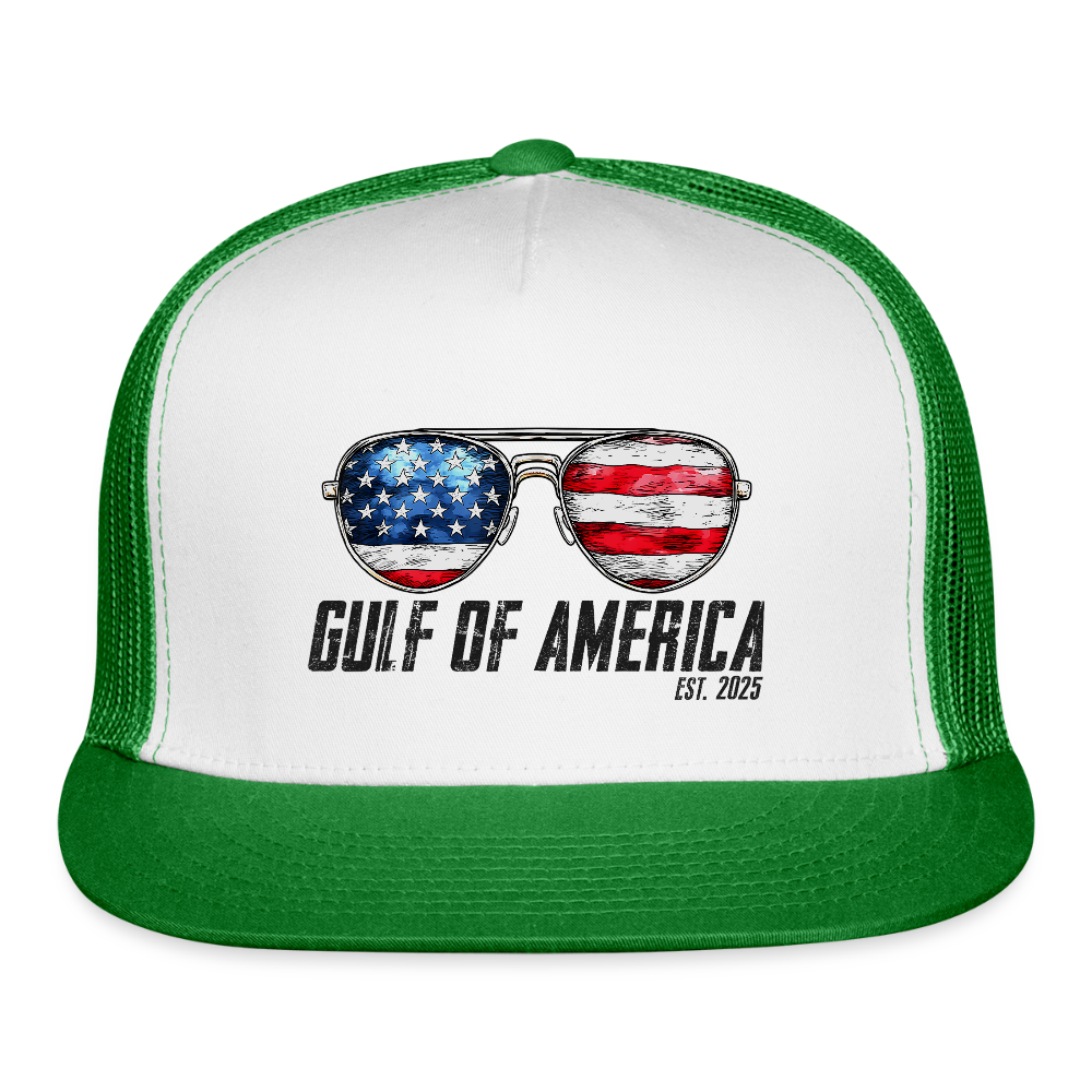 Gulf of America Sunglasses Patriotic Trucker Hat - white/kelly green