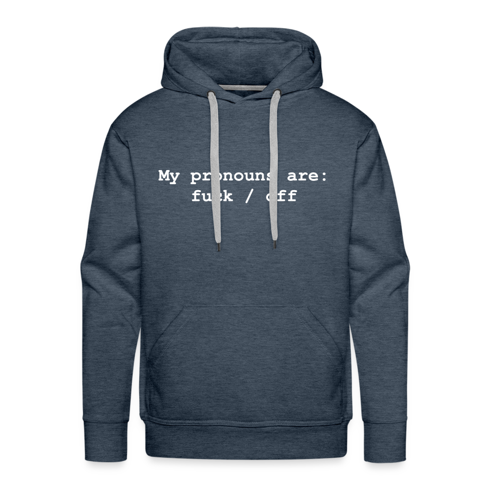 My Pronouns are f*ck / off Men’s Premium Hoodie - heather denim