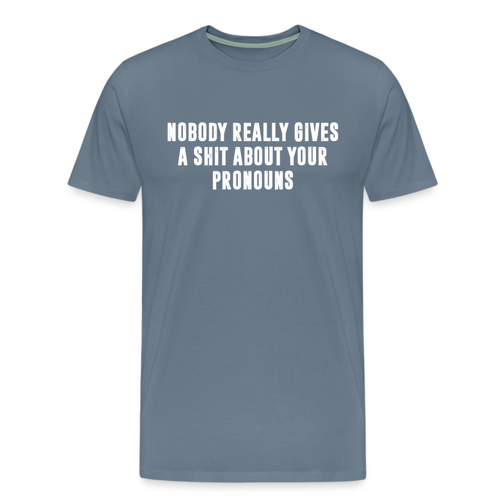 Nobody Really Gives A Shit About Your Pronouns Men's Premium T-Shirt - steel blue