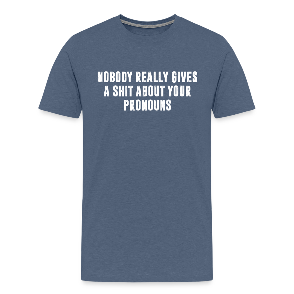Nobody Really Gives A Shit About Your Pronouns Men's Premium T-Shirt - heather blue