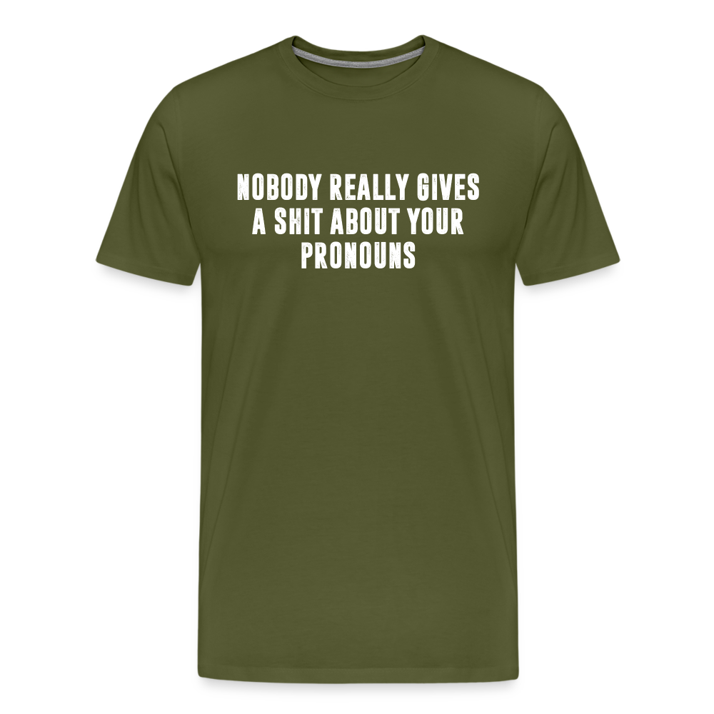 Nobody Really Gives A Shit About Your Pronouns Men's Premium T-Shirt - olive green