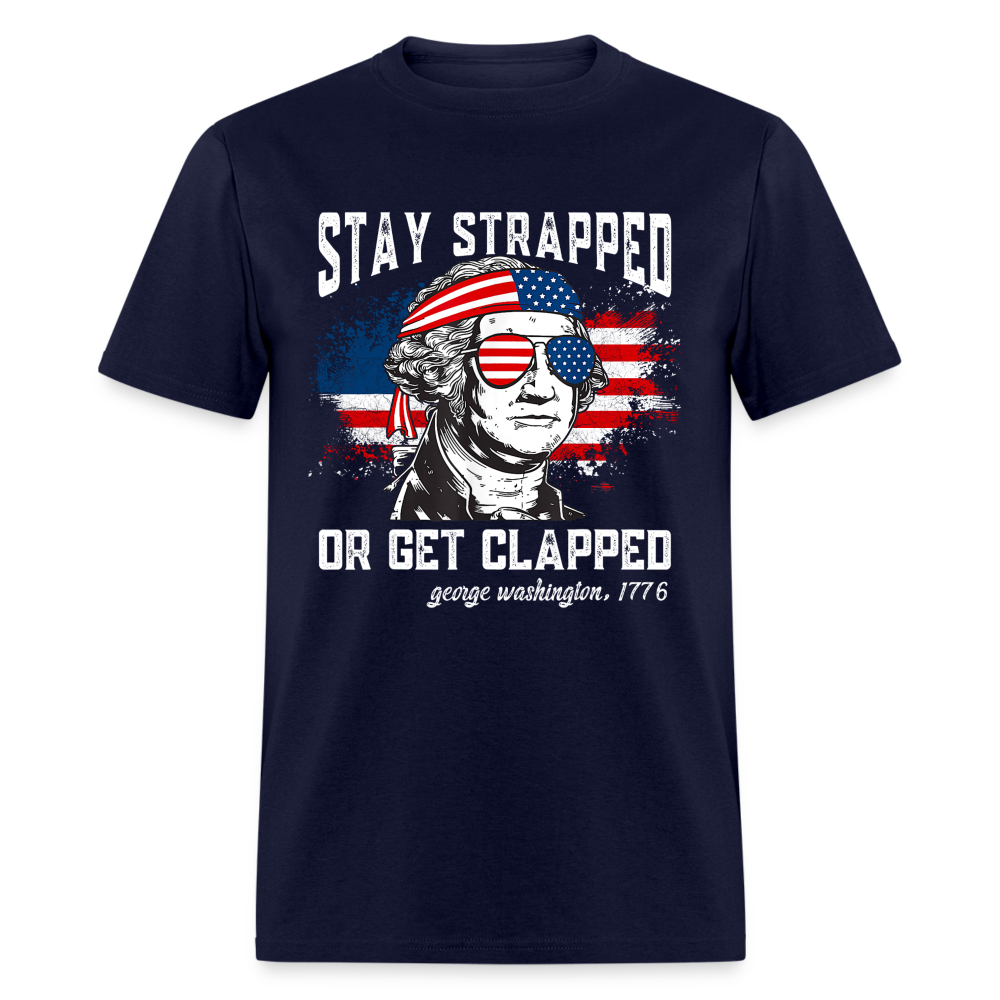 Stay Strapped Or Get Clapped - Funny George Washington 1776 Classic T-Shirt - navy