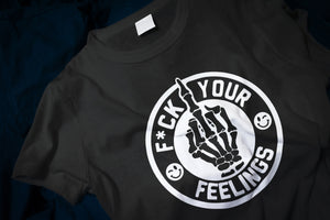 The F*CK YOUR FEELINGS Classic T-Shirt is a bold and unapologetic statement piece for those who value authenticity over political correctness. This badass shirt features a black and white graphic design that says it all, without sugarcoating anything. It is a strong statement that communicates a clear message to anyone who tries to undermine your values or tell you what to think. This t-shirt is perfect for those who refuse to be held back by the opinions of others and are not afraid to speak their minds. Made from high-quality materials, it is comfortable to wear and will last through many washes. Wear it with confidence, and let everyone know that you stand for something, even if it's not popular with the woke crowd.Â