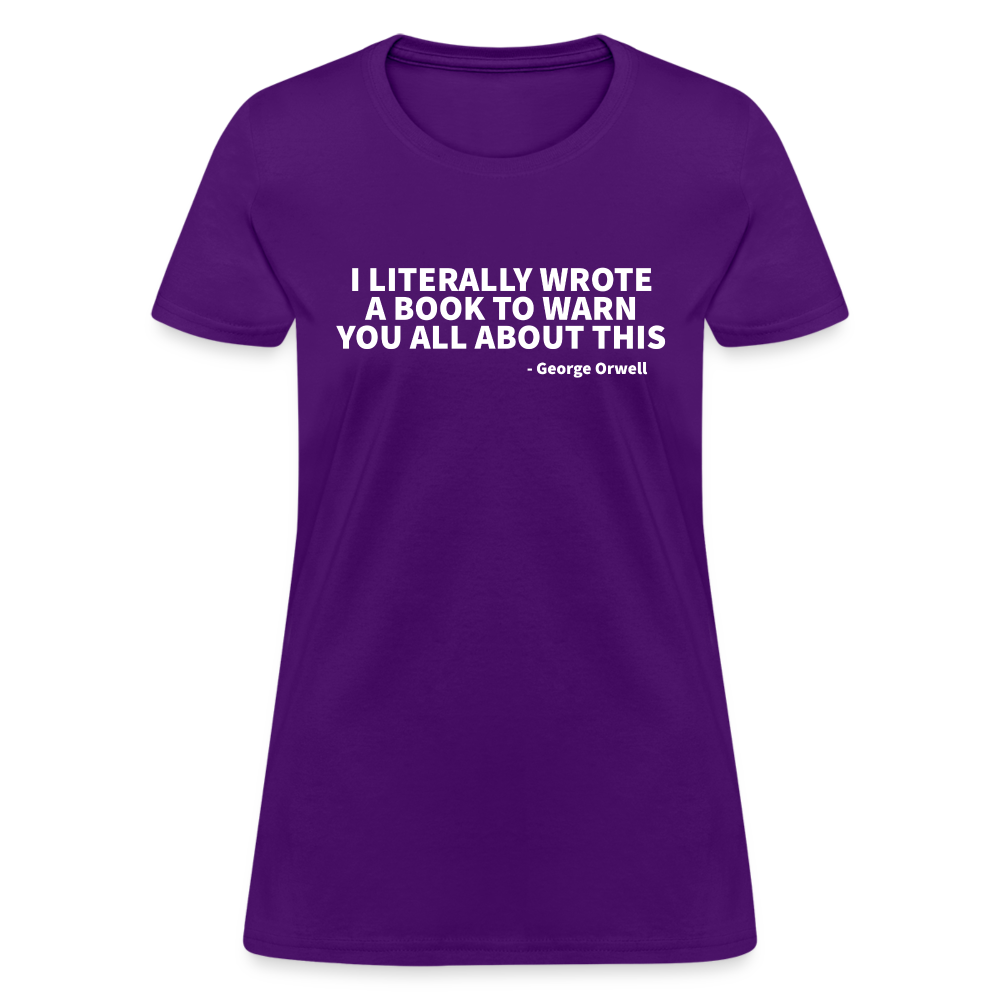 I Literally Wrote A Book To Warn You All About It - George Orwell Women's T-Shirt - purple