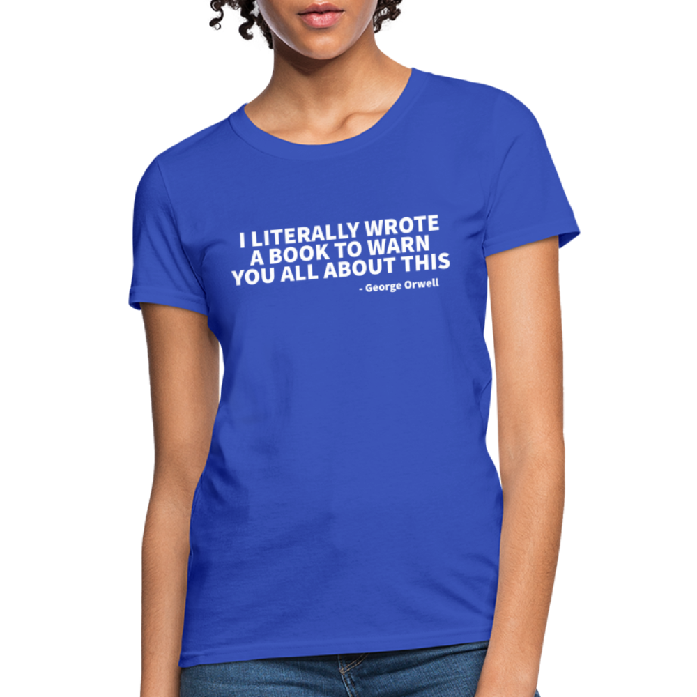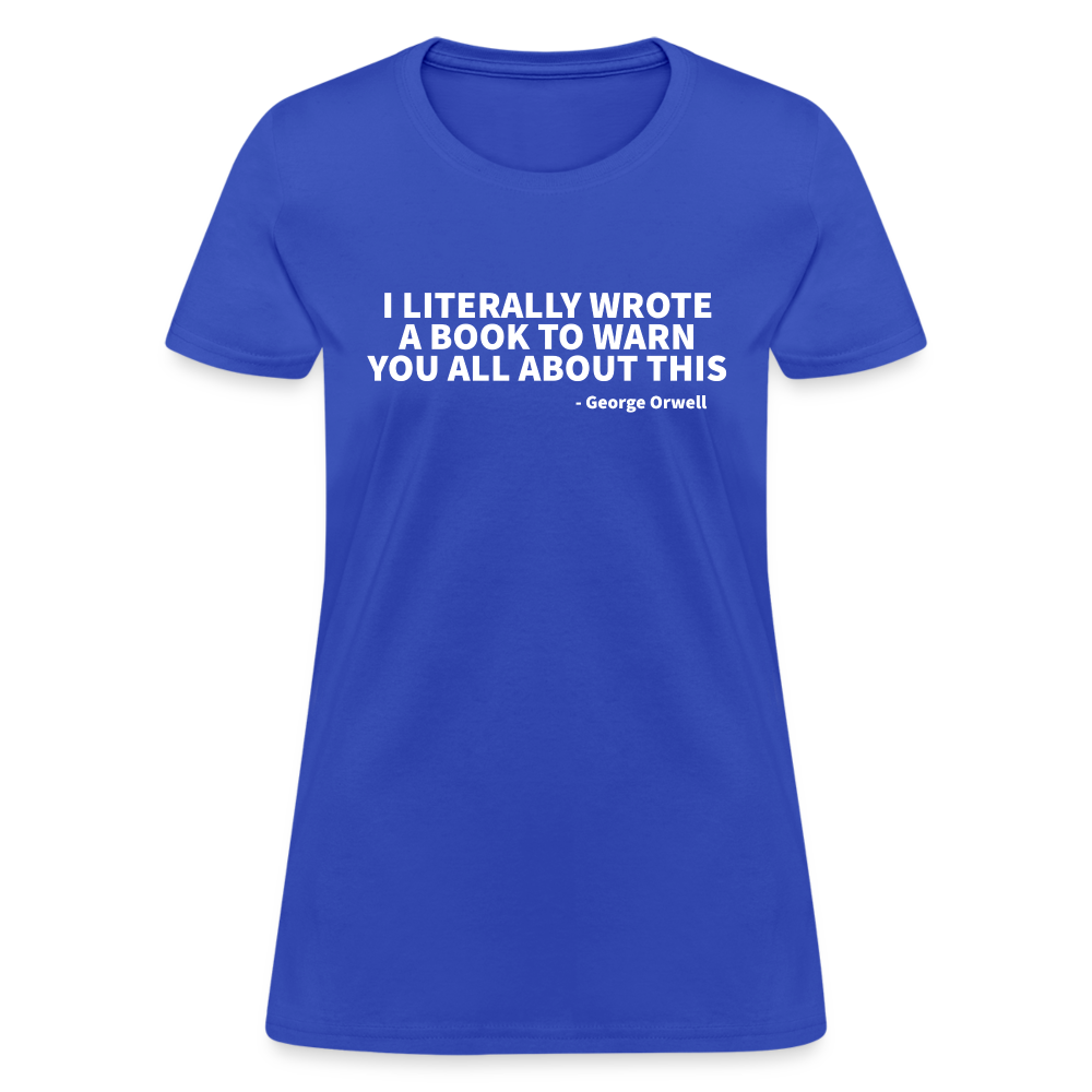 I Literally Wrote A Book To Warn You All About It - George Orwell Women's T-Shirt - royal blue